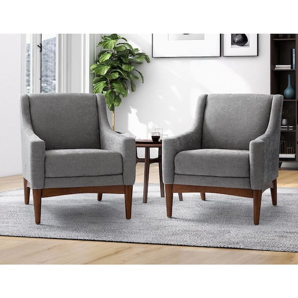 Gerald 30 in. Gray Polyester Arm Chair with Solid Wooden Legs (Set of 2)