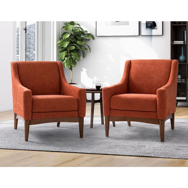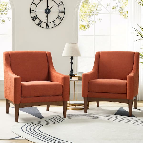Gerald 30 in. Orange Polyester Arm Chair with Solid Wooden Legs (Set of 2)
