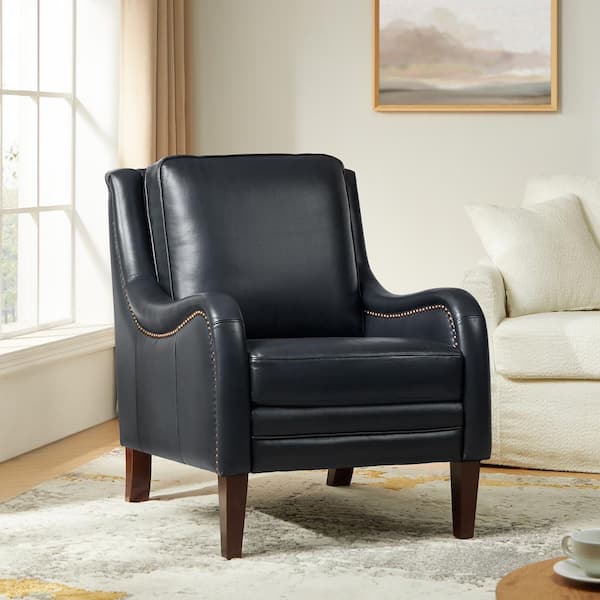 Gertrudis Navy 27.56 in. W Genuine Leather Upholstered Arm Chair with Nailhead Trims