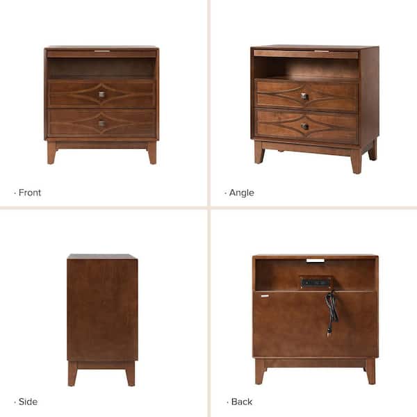 Gloria Walnut 3-Drawer 28 in. W Nightstand with Type-C and USB Ports