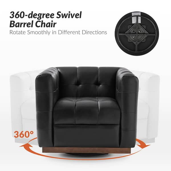 Gunther Black Genuine Leather Swivel Club Chair Set of 2 with Wooden Apron