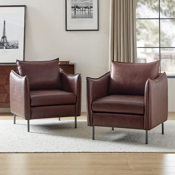 Hajo 30 in. Brown Faux Leather Arm Chair with Metal Legs (Set of 2)