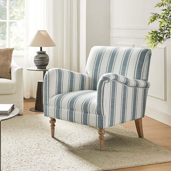 Hallstatt Retro Color Blue Classic Wooden Upholstery Accent Arm Chair with Wood Base
