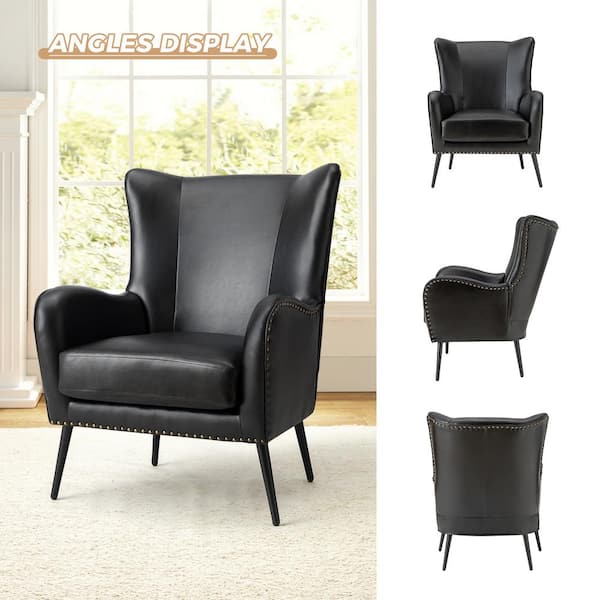 Harpocrates 30 in. Modern Black Upholstered Faux Leather Arm Chair with Metal Legs