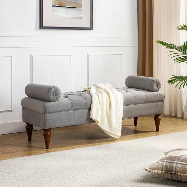 Heather Traditional Grey Upholstered Tufted Design Bench with Removable Bolster Pillows