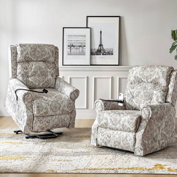 Herbert Traditional Lift Assist Massage Heating Power Recliner Set of 2 with Storage Bag and Manual Headrest-Damask