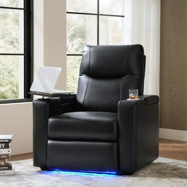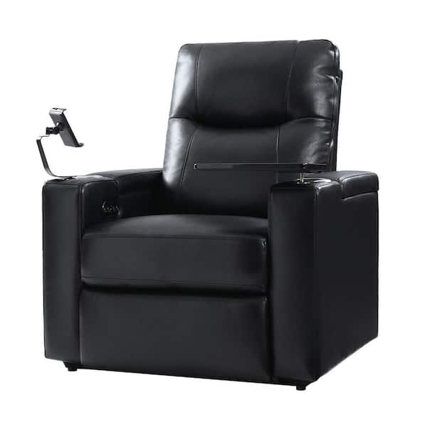 Hermi Black Transitional Genuine Leather Storage Recliner with USB