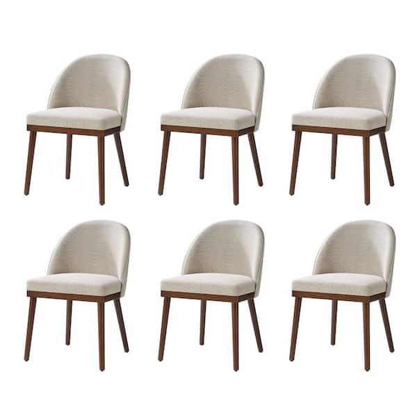 Hibbs Beige Modern Dining Chair with Solid Wood Legs Set of 6