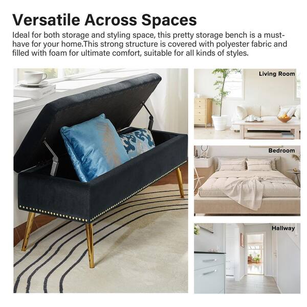 Hippolytus Classic Black 45.5 in. Polyester Button-Tufted Storage Bedroom Bench with Nailhead Trim