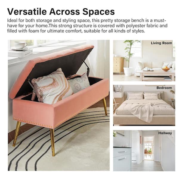 Hippolytus Classic Pink 45.5 in. Polyester Button-Tufted Storage Bedroom Bench with Nailhead Trim