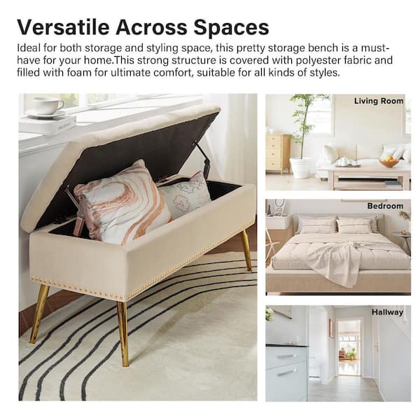 Hippolytus Classic Tan 45.5 in. Polyester Button-Tufted Storage Bedroom Bench with Nailhead Trim