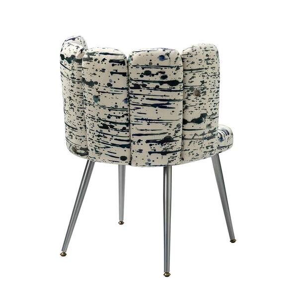 Hugo Ivory Upholstered Modern printed fabric Accent Side Chair with Shell Back and Golden Metal Legs