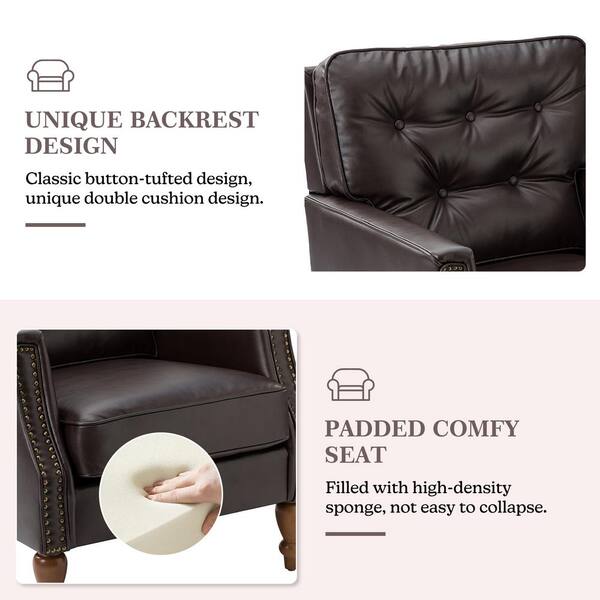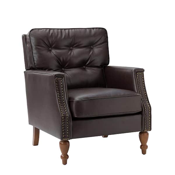 Hunfried Brown Vegan Leather Armchair with Solid Wood Legs