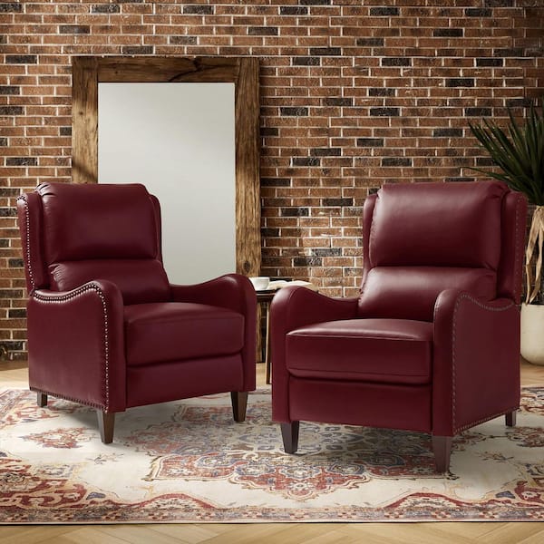 Hyde Modern Retro Burgundy Genuine Cigar Leather Recliner with Nailhead Trim (Set of 2)