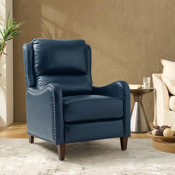 Hyde Modern Retro Cigar Genuine Leather Recliner with Nailhead Trim-Turquoise