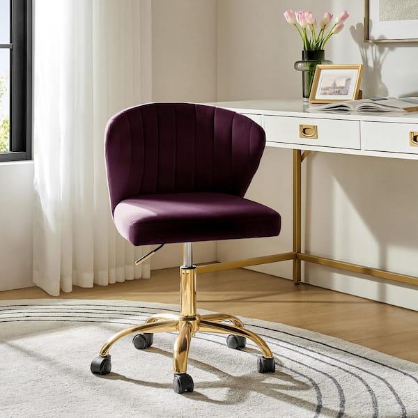 Ilia Modern Velvet up to 35 in. Swivel Adjustable Height Task Chair with Wheels and Channel-tufted Back-Purple