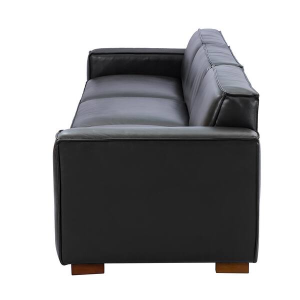 Inachus 110 in.W Square Arm Genuine Leather Modular Straight Sofa in Black