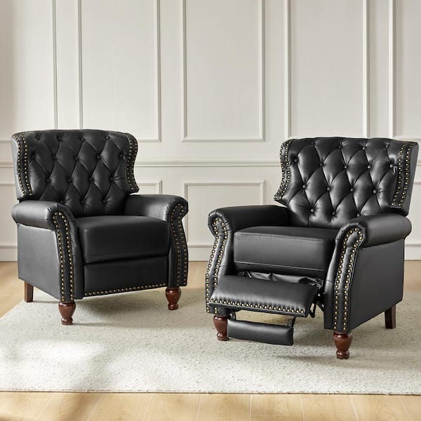 Isabel Black Genuine Leather Recliner with Tufted Back and Rolled Arms Set of 2