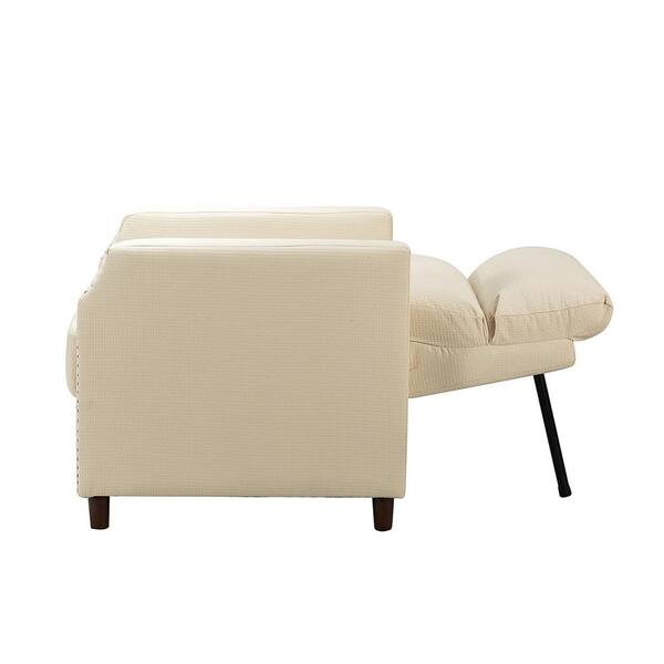 Isai a s Tufted Cotton Blend Reclining Ivory Lounge Chair with Ottoman