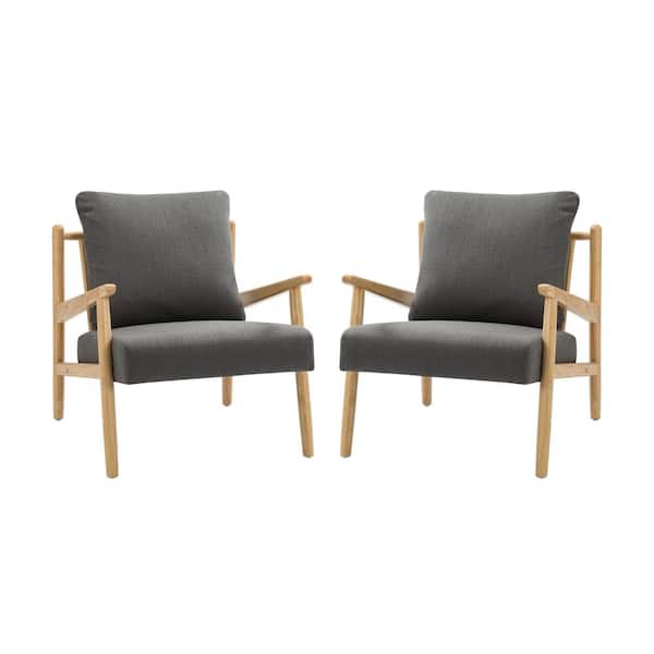 Isse Grey Armchair with Solid Wood Legs (Set of 2)