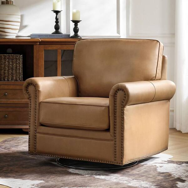 Jacindo Camel Traditional Genuine Leather Swivel Rocking Accent Chair Set of 2 with Nailhead Trims