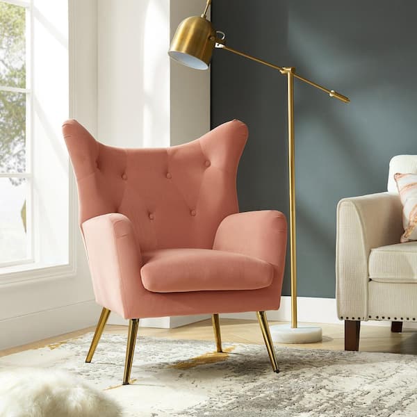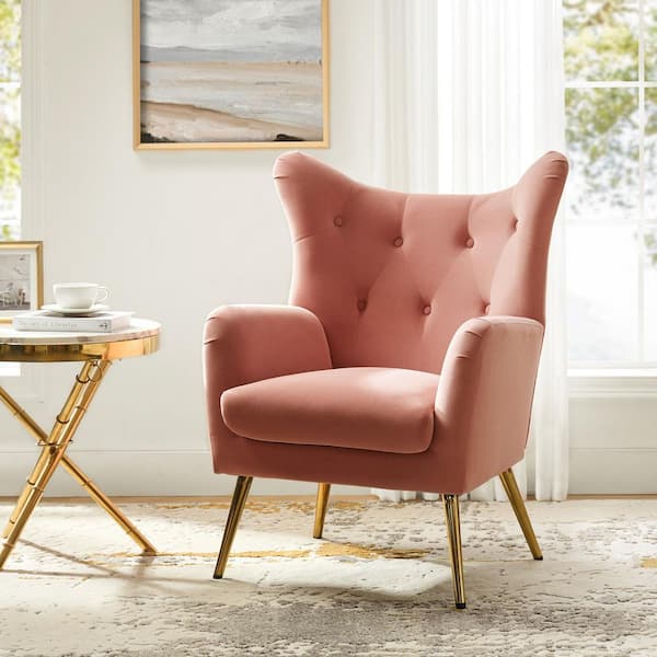 Jacob Golden Leg Pink Tufted Wingback Chair