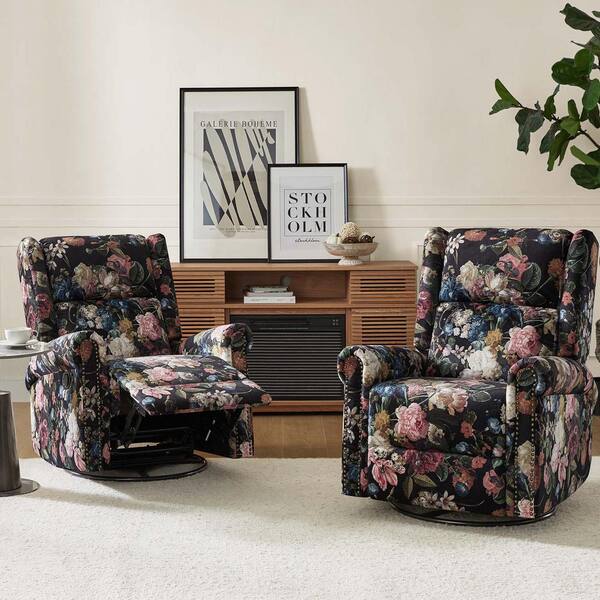 Jahwe Floral Manual Livingroom Swivel Glider Nursery Recliner with Swivel Base (Set of 2)