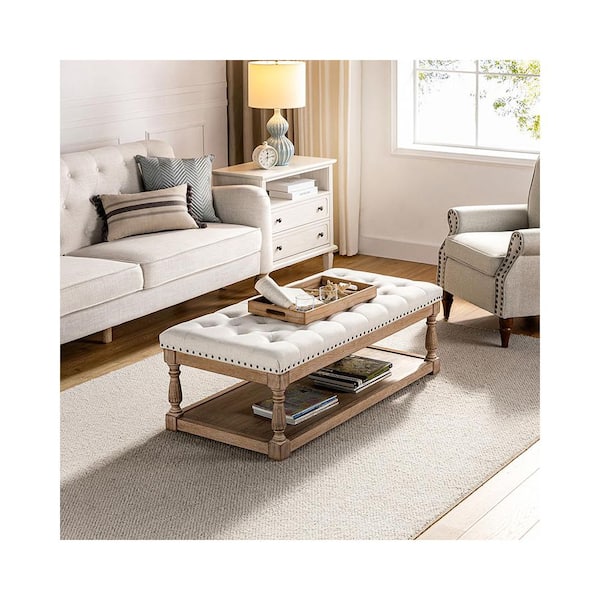 • Farmhouse ottoman with button-tufted and nailhead trim
