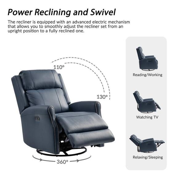 Javier Navy 29.25 in. W Mid-century Modern Leather Swivel Rocker Power Recliner (Set of 2)