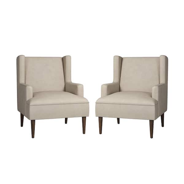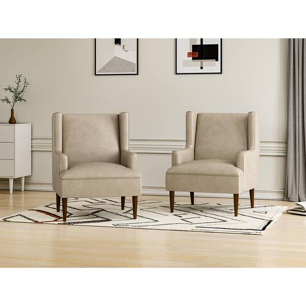 Jeremias Beige Vegan Leather Accent Chair Set of 2 with Solid Wood Legs