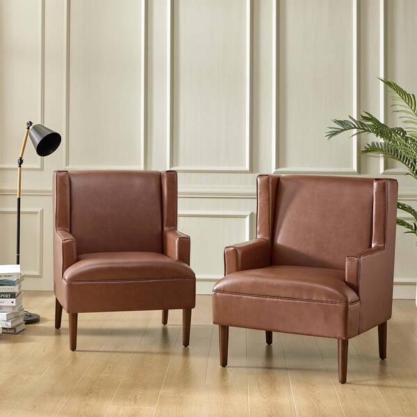 Jeremias Brown Vegan Leather Accent Chair Set of 2 with Solid Wood Legs