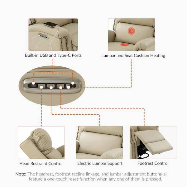 Joachim Beige 34.5 in. Traditional Genuine Leather Power Swivel Glider Recliner Set of 2