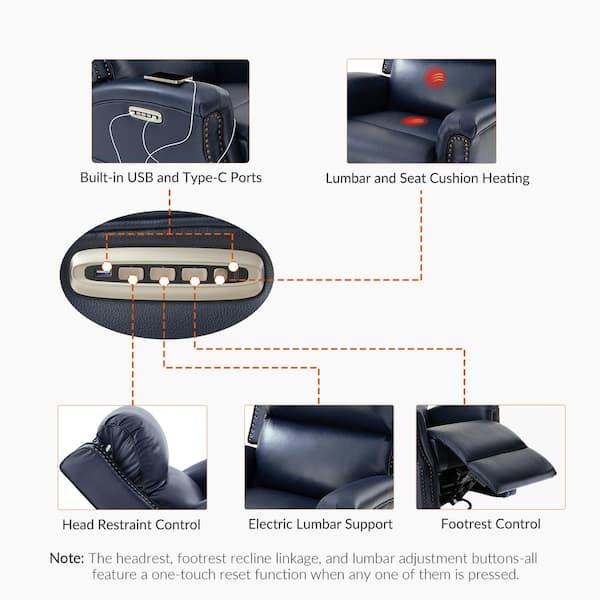 Joachim Navy 34.5 in. Traditional Genuine Leather Power Swivel Glider Recliner