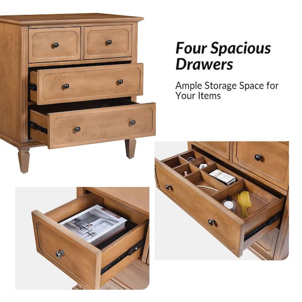 Jovina Acorn 30 in. W 4-Drawer Accent Chest with Built-in Divider Tray and Charging Station