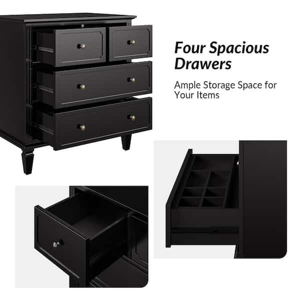 Jovina Black 30 in. W 4-Drawer Accent Chest with Built-in Divider Tray and Charging Station