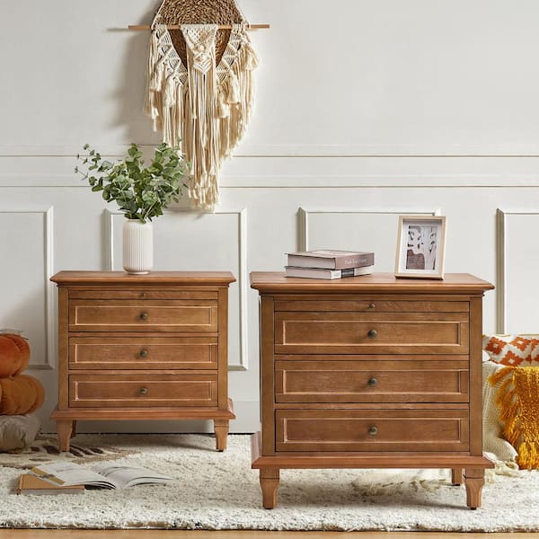 Julia Acorn 27 in. H Traditional 3-Drawer Solid Wood Legs Nightstand with Charging Station Set of 2