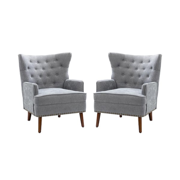 Laomedon Grey Armchair with Nailhead Trim Set of 2