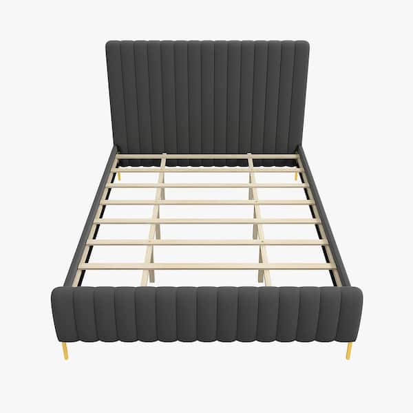 Latium 65 in. W Black Tufted Upholstered Platform Bed with Metal Legs