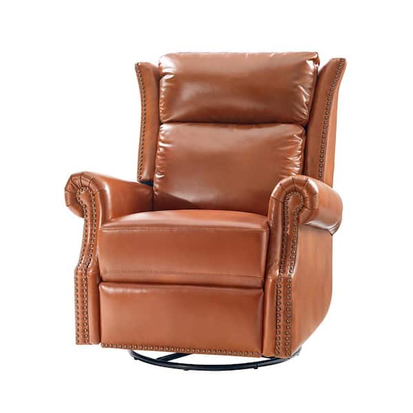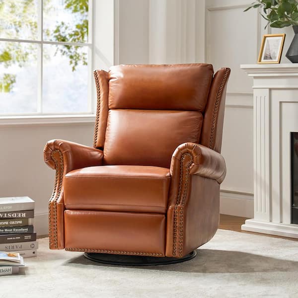 Lavinia Saddle Genuine Leather Manual Swivel Glider Recliner with Nailheads