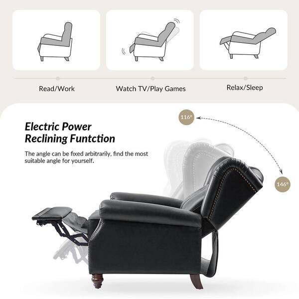 Leni Black 32.5 in. Genuine Leather Power Recliner with USB and Type-C Charging Ports (Set of 2)