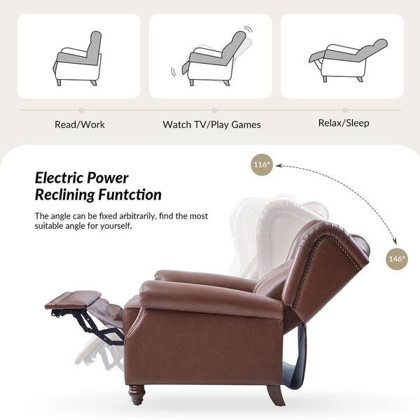 Leni Brown 32.5 in. Genuine Leather Power Recliner with USB and Type-C Charging Ports