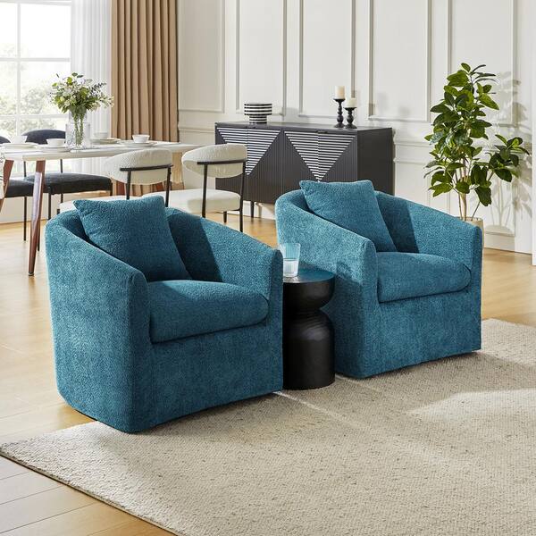 Leo Teal Upholstered Velvet Swivel Barrel Chair with Back Pillow (Set of 2)