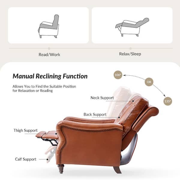 Louisa Saddle 33.5 in. W Genuine Leather Manual Recliner with Solid Wood Legs