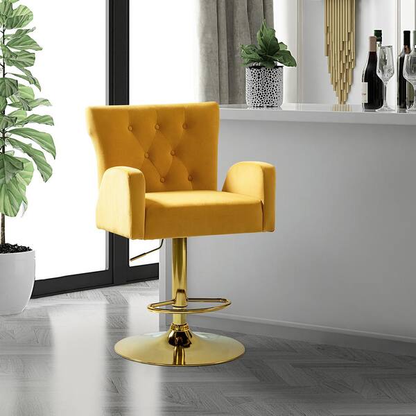 Luciana Modern Mustard Velvet Adjustable Swivel Bar Stool with Tufted Back