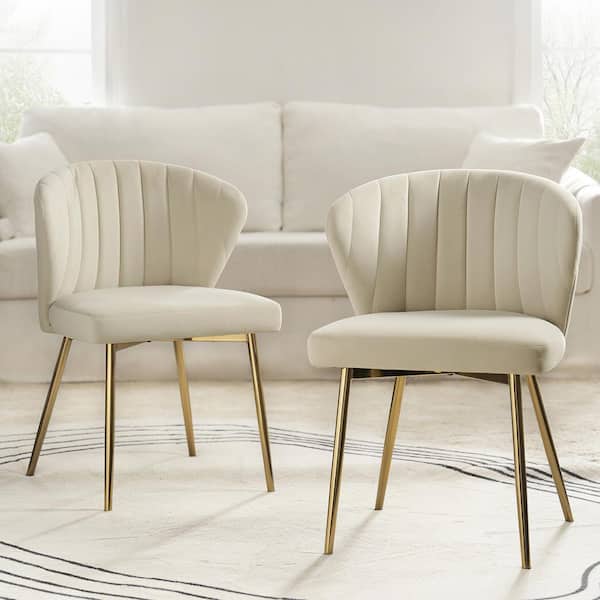 Luna Tan Velvet 20 in.W x 19.5 in.D x 29 in.H Tufted Wingback Side Chair with Metal Legs