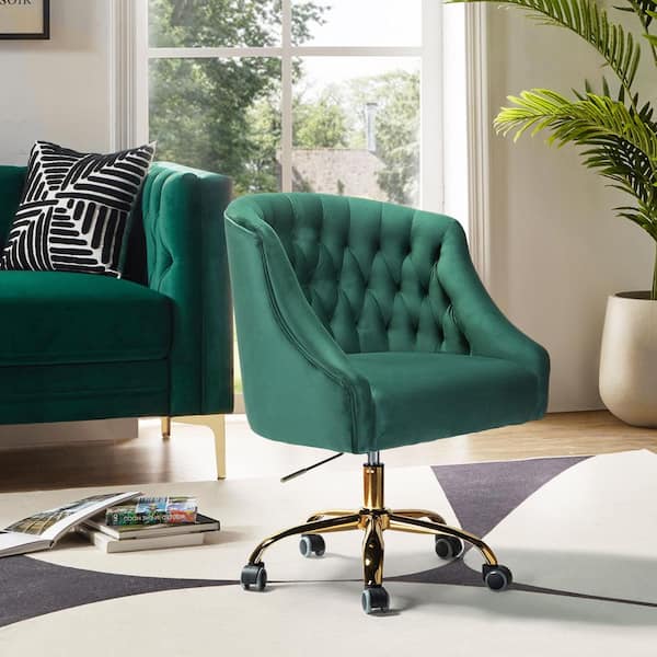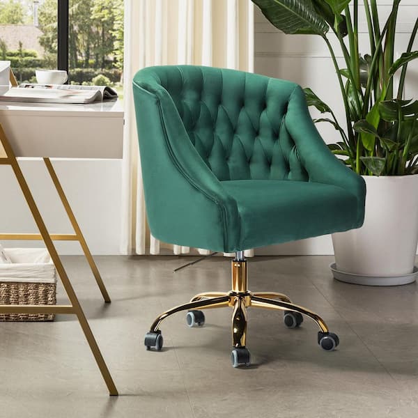 Lydia 24.5 in. Mid-Century Modern Green Velvet Tufted Hand-Curated Task Chair