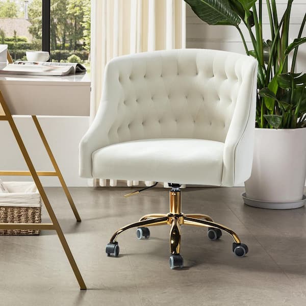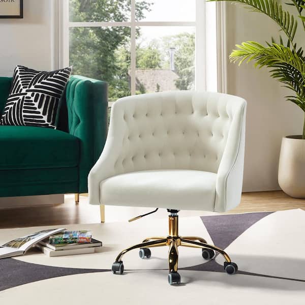 Lydia 24.5 in. Mid-Century Modern Ivory Velvet Tufted Hand-Curated Task Chair