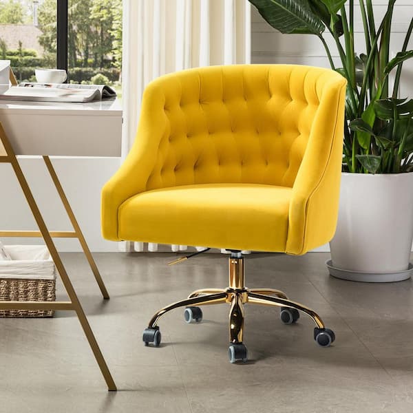 Lydia 24.5 in. Mid-Century Modern Yellow Velvet Tufted Hand-Curated Task Chair