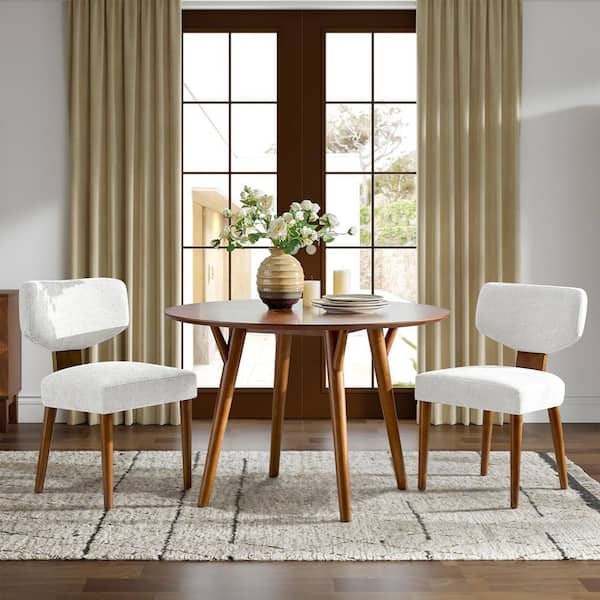Lydia Ivory Polyester Dining Chair with Solid Wood Legs and Curved Backrest