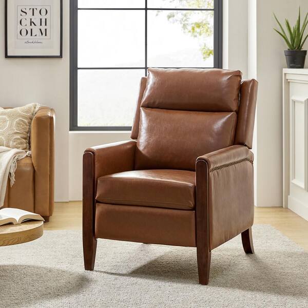 Manuel Camel Leather Push Back Manual Recliner with Solid Wood Legs